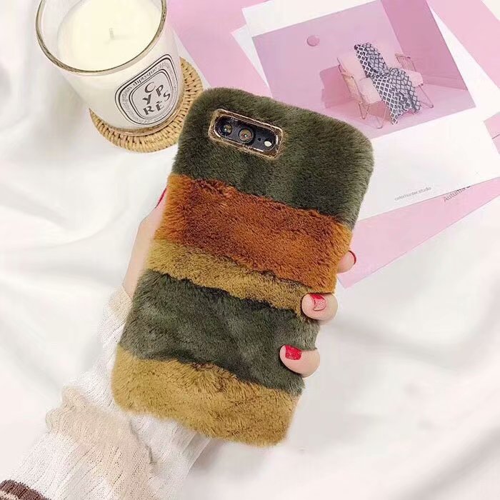 For iPhone XS MAX Furry Case , Stripe Contrast Color Fur Phone Case for iPhone 8 Plus XS for Women Girls