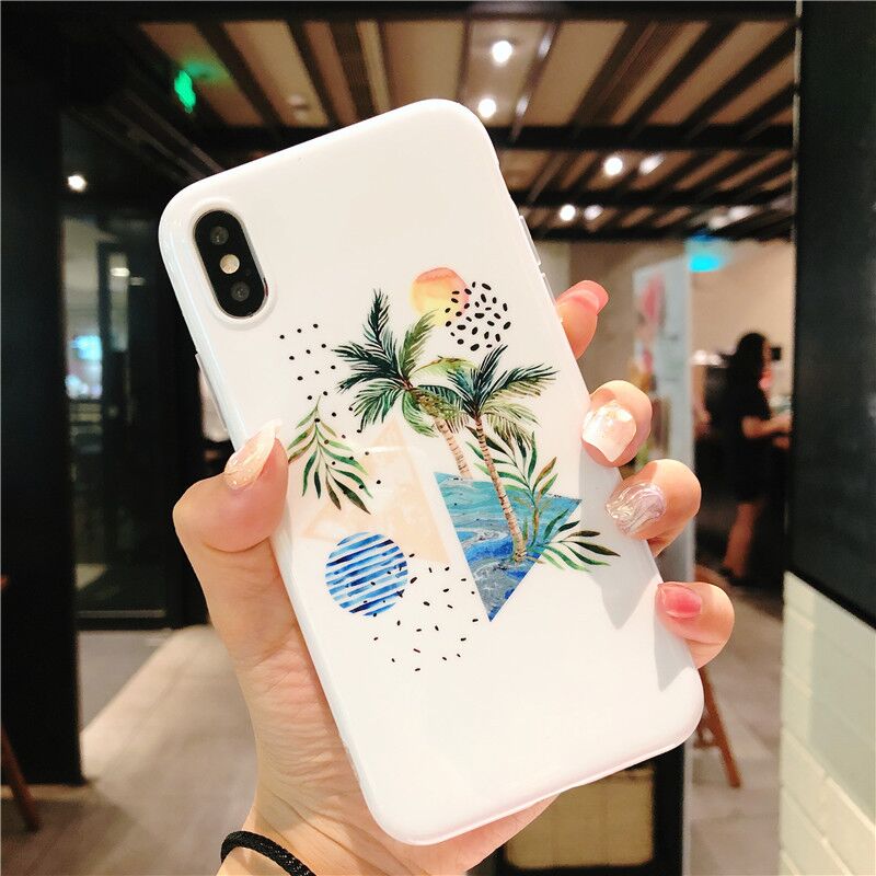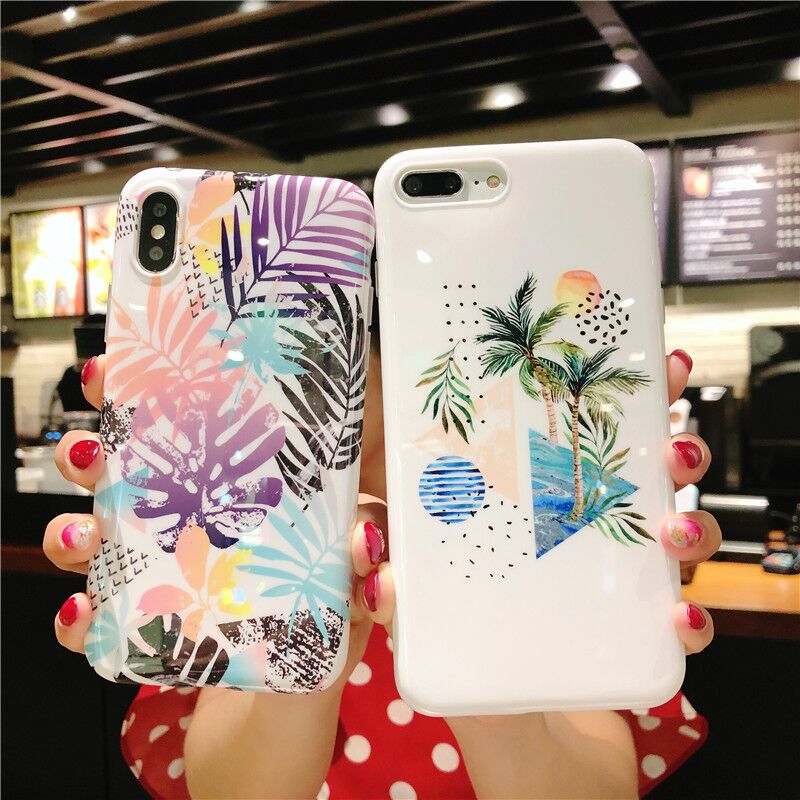 2018 New Tropical Leaf TPU Phone Case for iPhone XS Max , For iPhone 8 Plus Case Silicone with Coconut Leaves Design