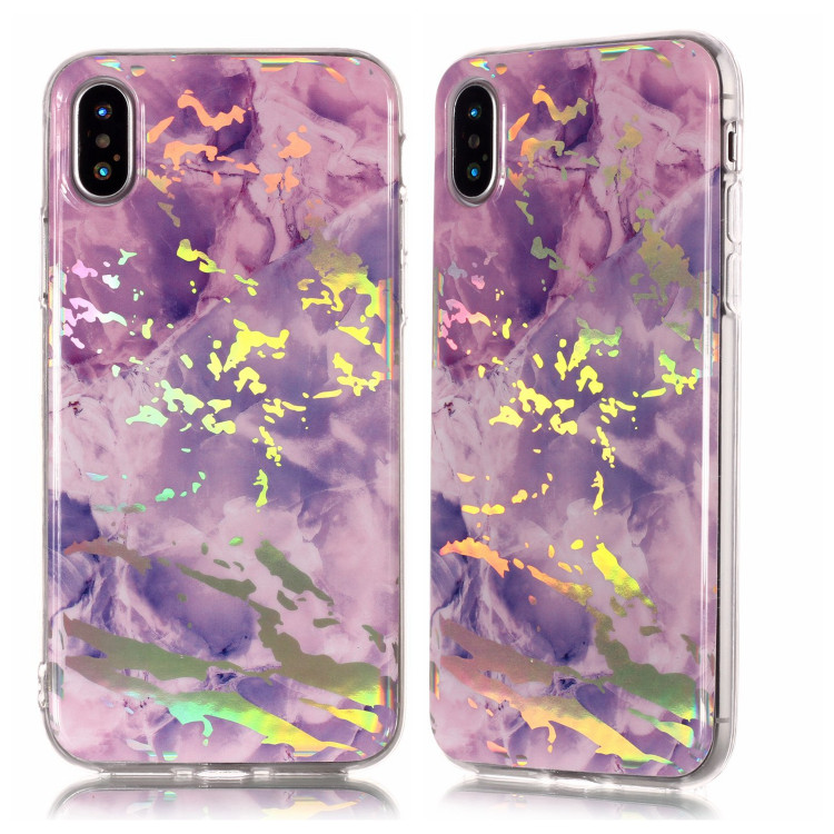 Soft TPU Purple Chrome Granite Phone Case for iPhone XS XR , for iPhone XS Max Marble Case