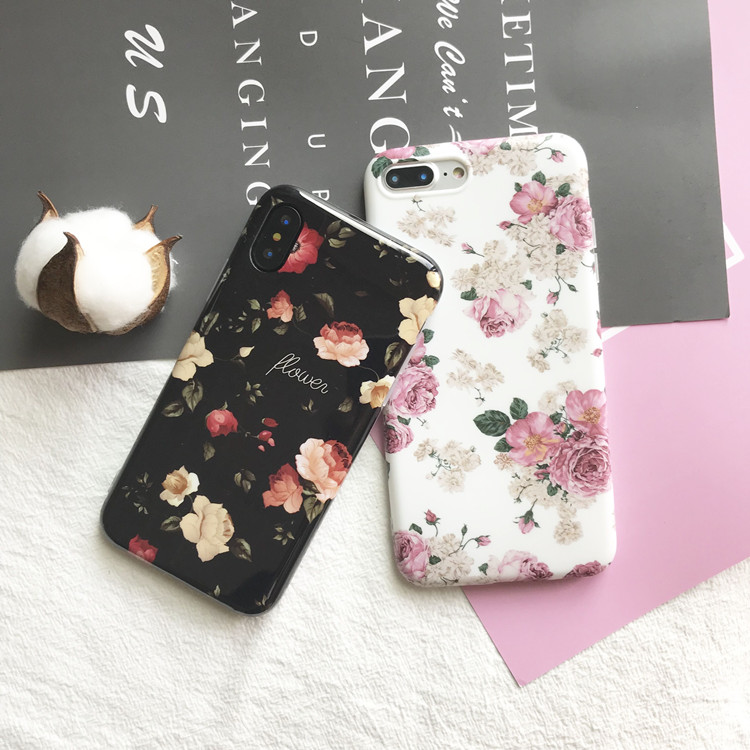 For iPhone X Floral Case for Girls Women , Vintage Elegant Rose Flowers Protective Phone Case for Apple iPhone 8 Plus