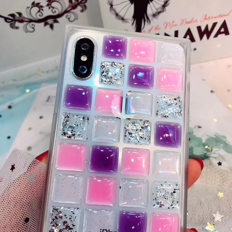 Beautiful Pretty 3D Jewel Case for iPhone X 8 7 6 plus , Square Brick Phone Cases for Girl