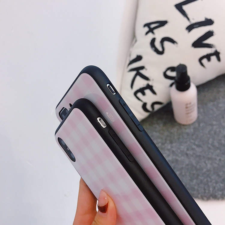 Checked Tempered Glass Cell Phone Case for iPhone 8 7 plus , for iPhone X Plaid Case