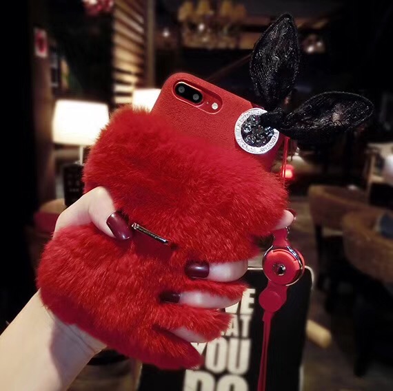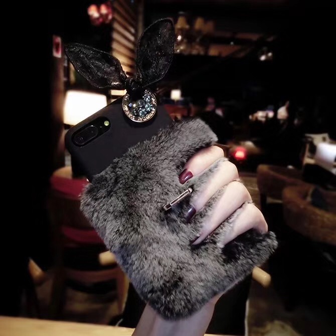 - with 3D rabbit ear / warm plush fur phone case