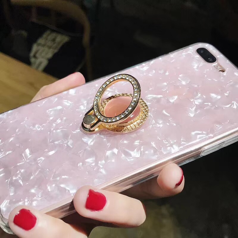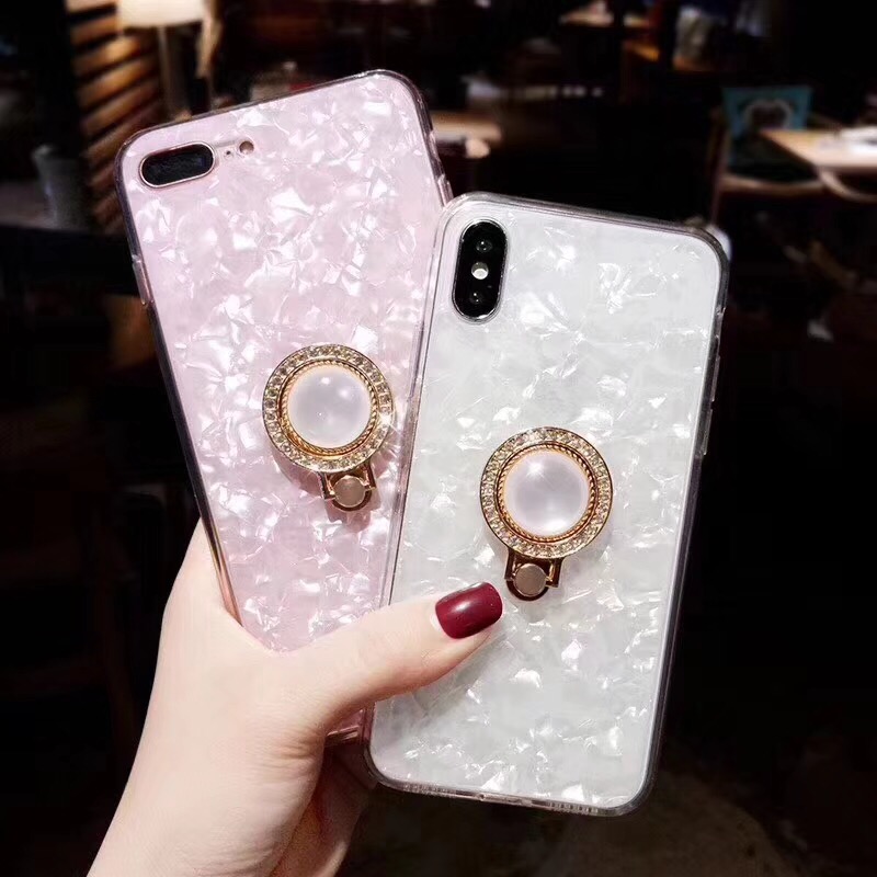 Shell Bling Glitter Silicone Cell Phone Case for iPhone X 8 plus with Diamond Ring Holder