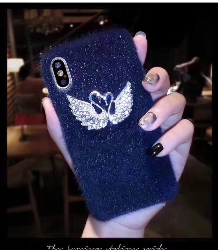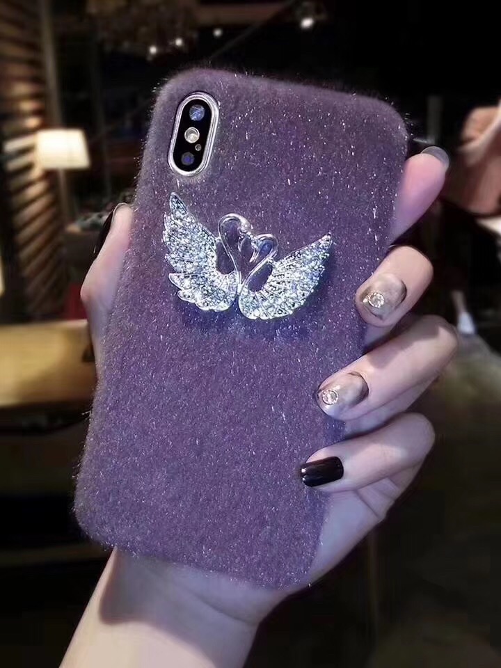 Fashion Girl Flannel Flannelette Phone Case for iPhone Xr Xs Max , for iPhone X Case with Crystal Swan