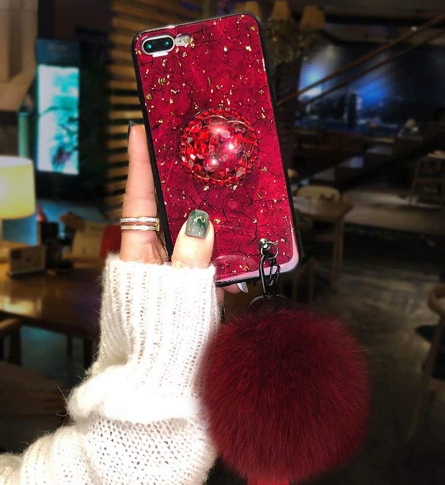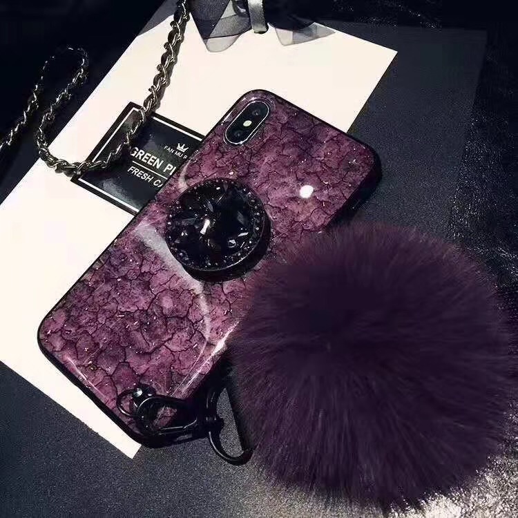 Fancy Rhinestone Marble Fur Ball Phone Case for Samsung Note 9 , For Galaxy S9 Bling Case Cover