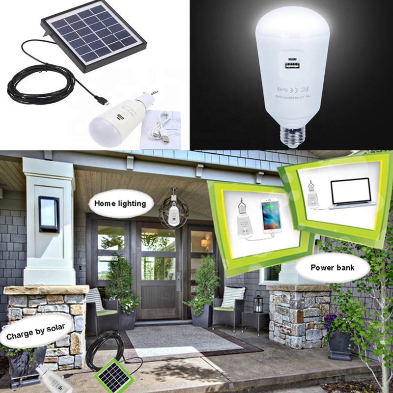 2018 Hot Sales Small Rechargeable Solar Kit LED Home Lighting Power Bank 7W Bulb Mini Solar Energy System for Home