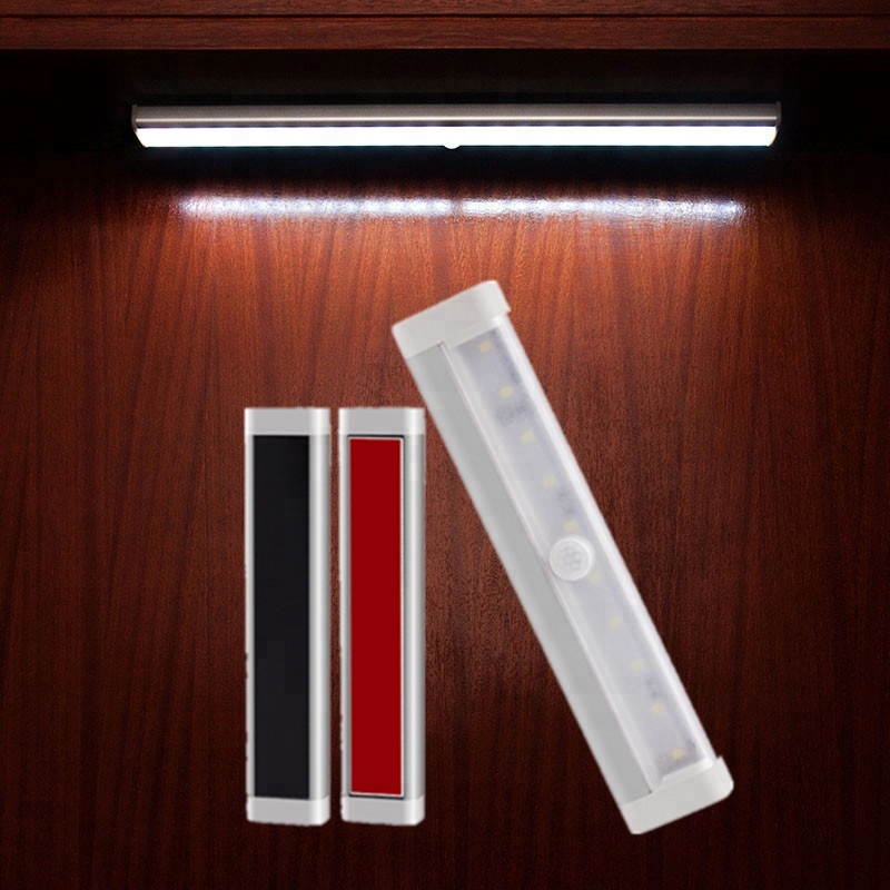 Wireless Magnetic Tap 10-LED Motion Sensor Activated LED Under Closet Cabinet Night Light with Rechargeable Battery