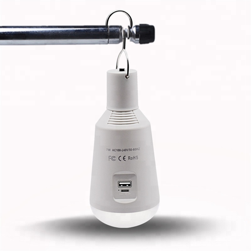 CE/RoHS FCC listed AC100-240V DC5V USB charge E27 Rechargeable Emergency LED 7W Bulb 18650 Lithium battery operated 2600mAh