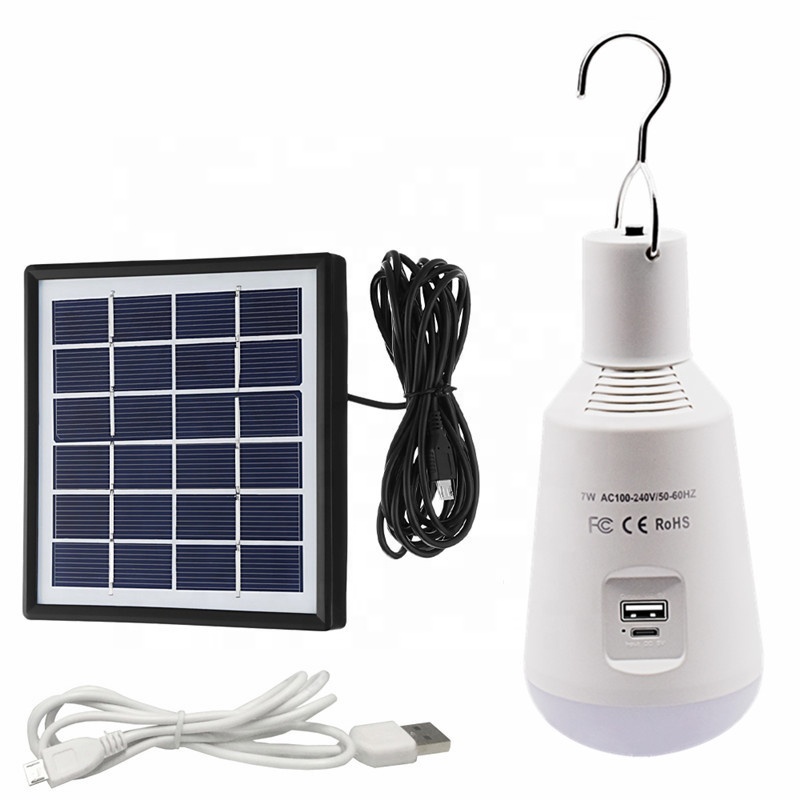 Portable Hook Mobile Charge 7W E27 Base Bulb Solar Lighting System Home System Bulb Kit with 1.8W Solar Panel