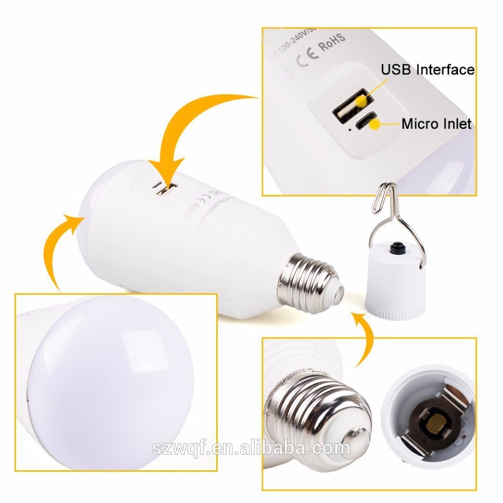 7W outdoor / Indoor rechargeable white e27 led bulb