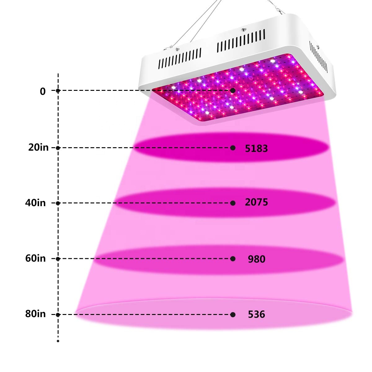 Higher PAR Value and Energy Saving—Unique 90 degree optical lens and Eplieds 10w chips design bring higher PAR value and Lumen output than others. Effectively reduce light loss and ensure the utilization of light up to 98%. That makes this growing light achieved the balance between efficient utilization and energy-saving. With it, you can grow delicate tropicals that will bloom year-round, as well as letting you harvest easy-to-grow vegetables and herbs in the coldest winter day.