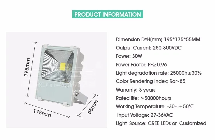 - IP67 waterproof bridgelux cob 30w led flood light