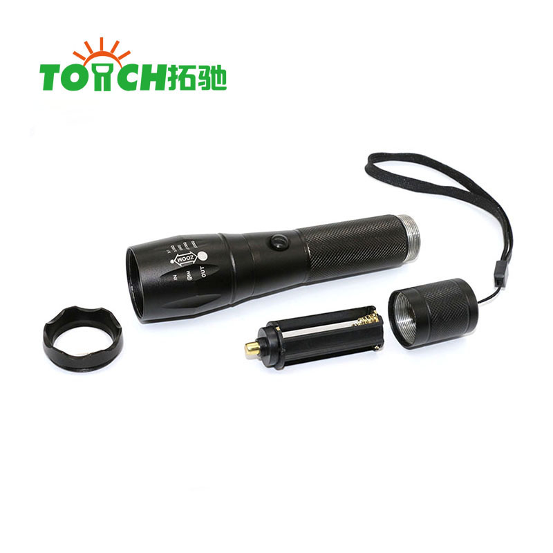 This flashlight torch uses T6 Bulb, 1*18650/3*AAA battery, producing super bright beam of light