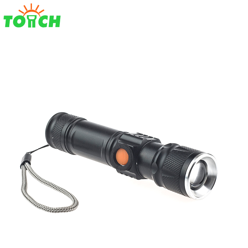 led rechargeable zoomable flashlight T6 tactical strong light hand torch with tail magnet