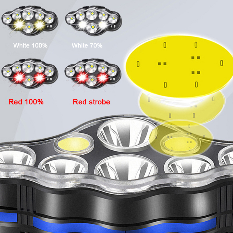 High Power 6000LM XML T6 COB LED Headlamp Rechargeable USB Headlight Red Lights Helmet Light for Camping