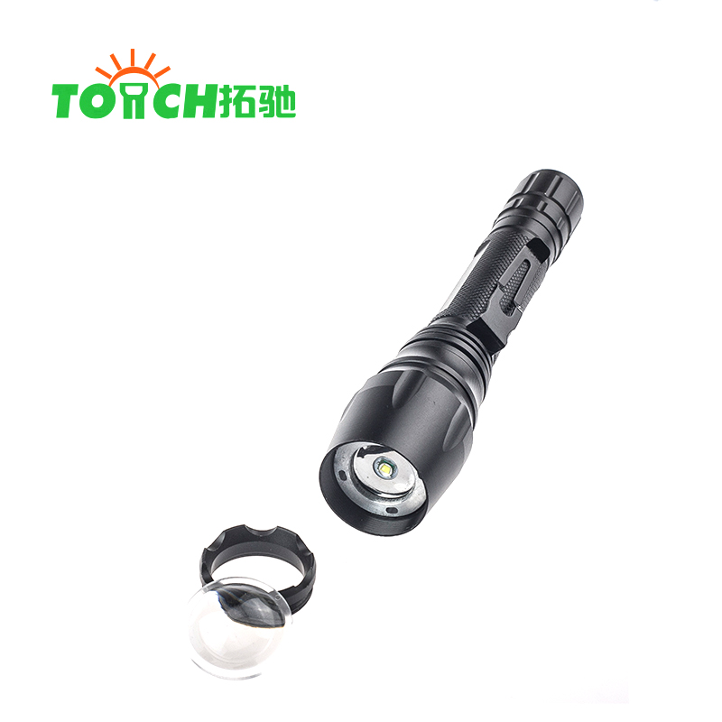 Hot sell zoomable T6 bulb 18650 battery with pocket clip waterproof led flashlight