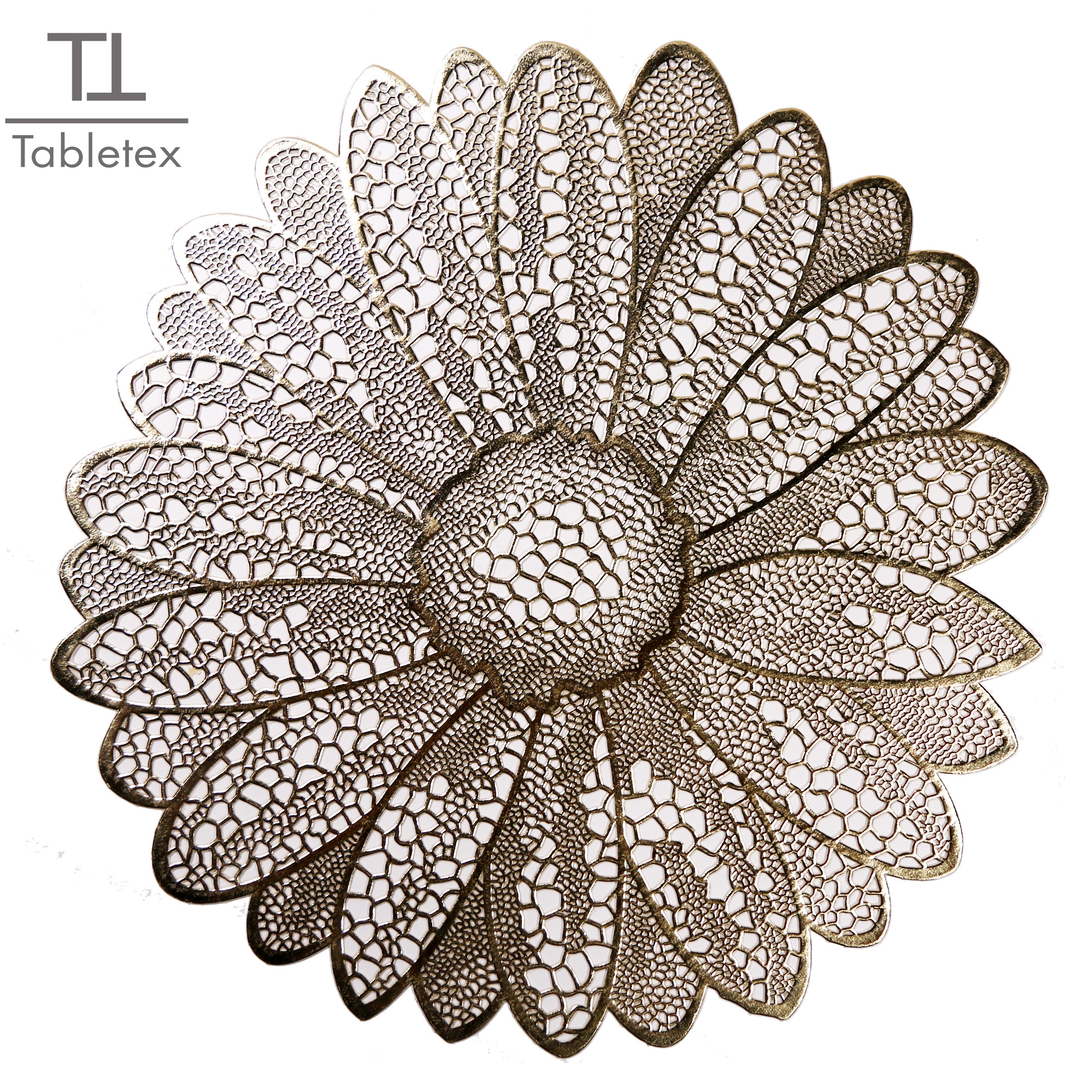 Item | Tabletex 38cm RoundDining Tableware Pad Hollow Out Flower Insulation Decorative Metallic Placemat PVC Coaster Pads Bowl Mat | |