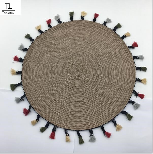 Eco-Friendly Anti-slip Fashion Design Round Woven PP Placemats with Fringe