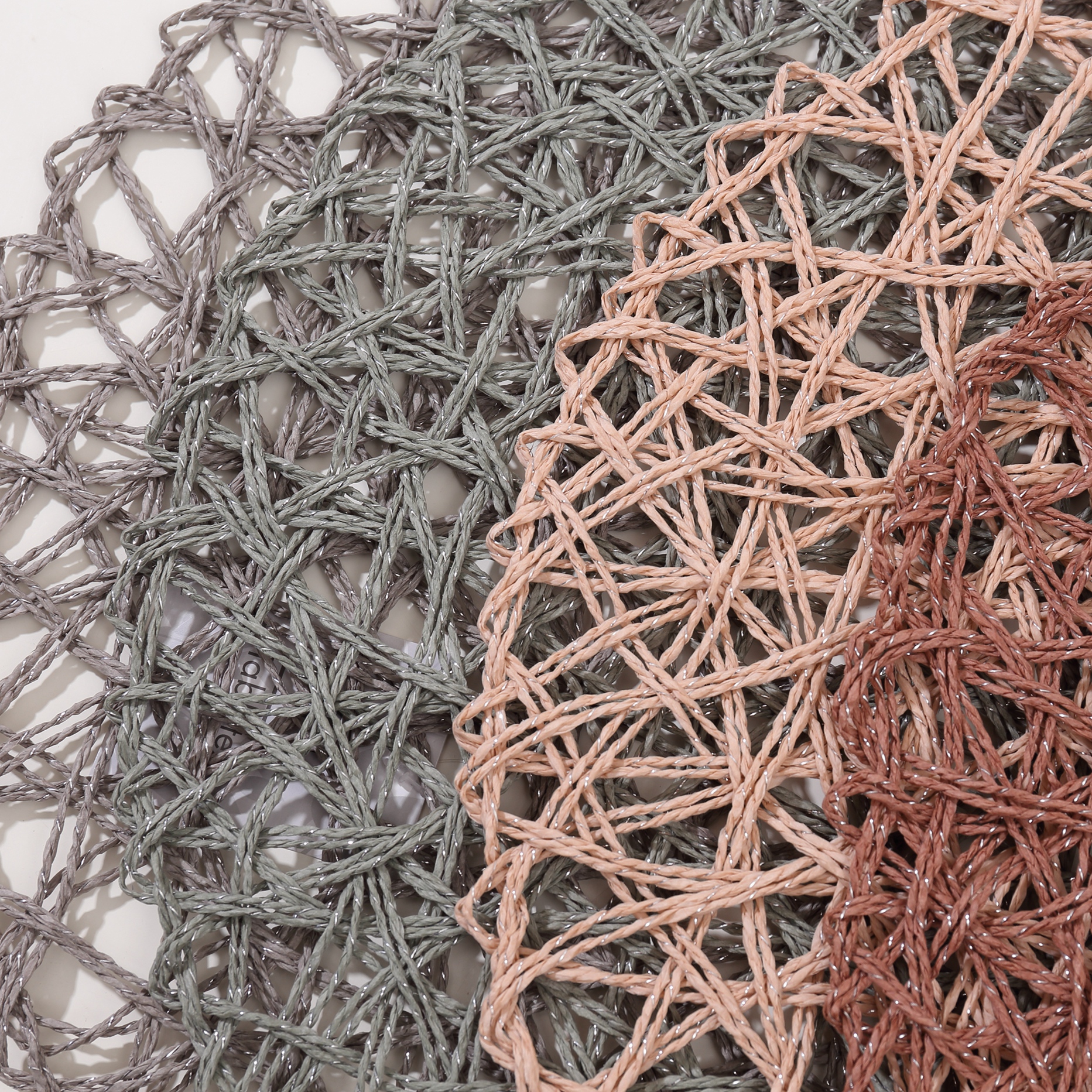 Tabletex eco-friendly wholesale cheap hot sale new style round hollow food serving placemat paper straw flitter placemats