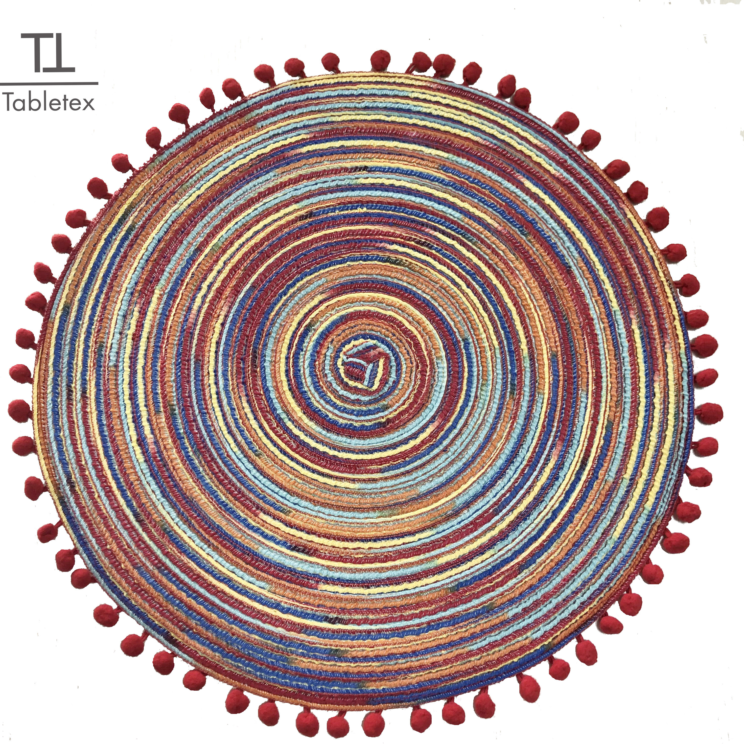 Tabletex polypropylene Braided woven round Table placemat with pompom polyester colorful placemat