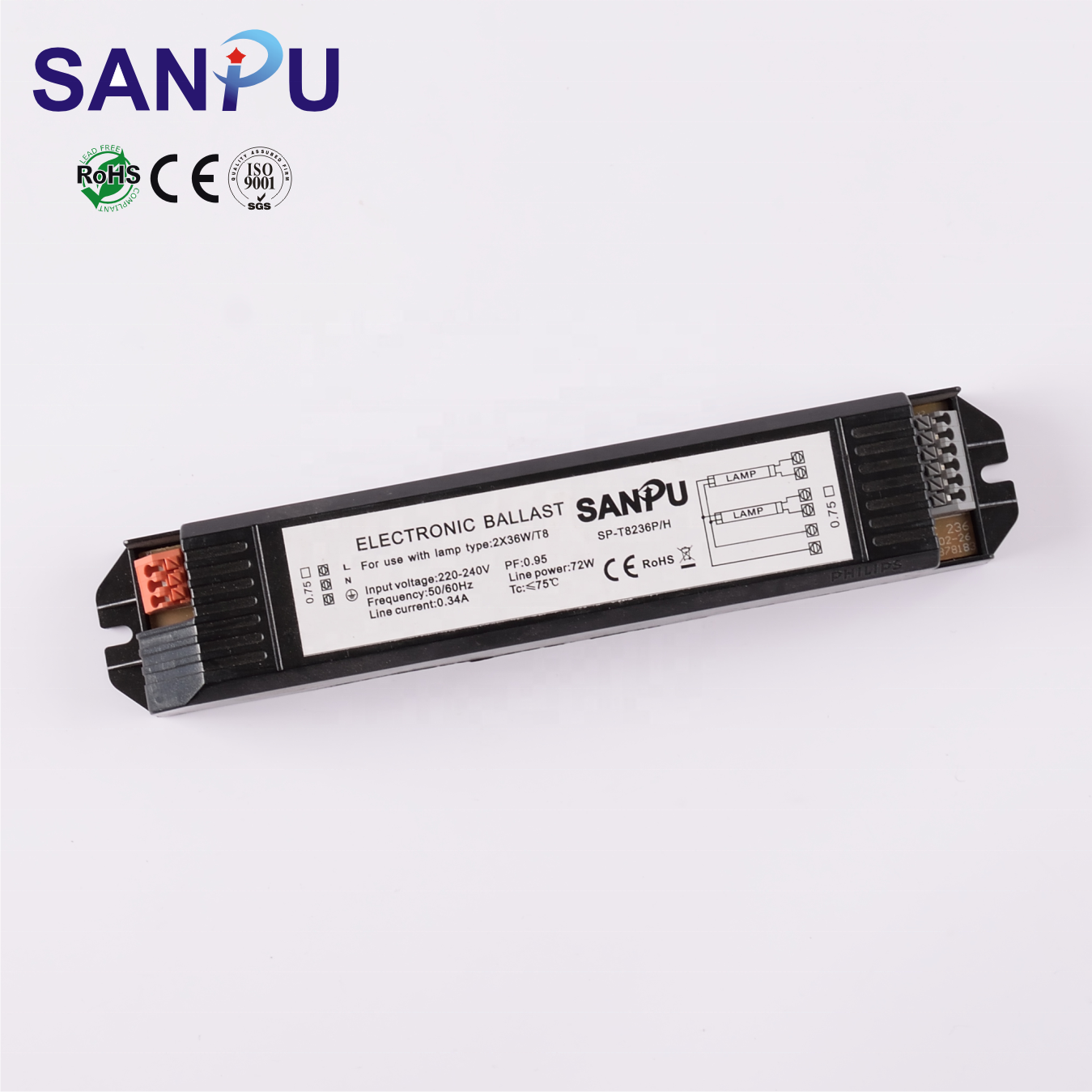 Factory direct selling high quality electronic ballast LED T5/T8 2x36W voltage72w
