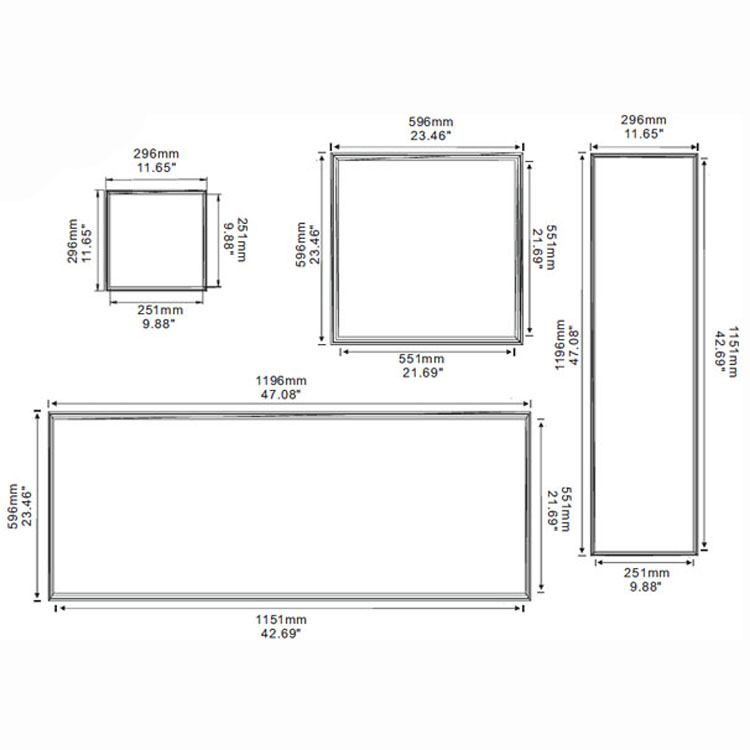 - 1x1ft / 1x2ft / 1x4ft / 2x2ft / 2x4ft