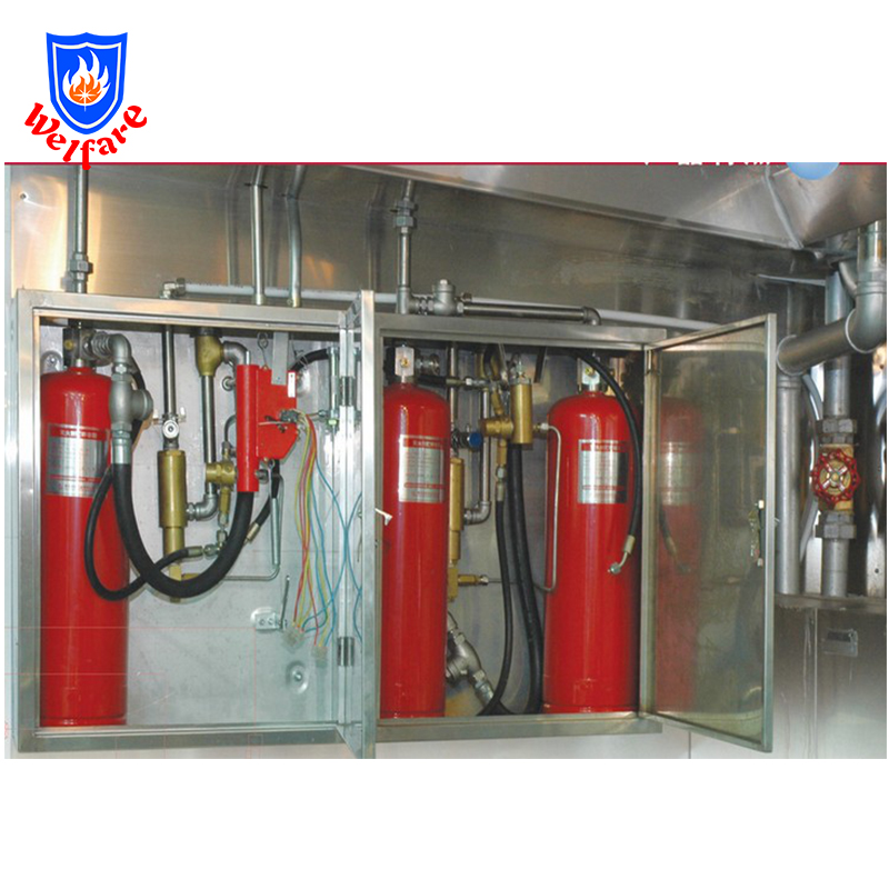 When the hearth in the kitchen is fired,this system can extinguish the fire automatically by means if heat detection system to carry out monitoring for 24 hours and can extinguish the initial fire by manual start-up.it can also close the fuel valve through mechanical or electric signal and provide electric signal and transmit it to the middle-control room.
