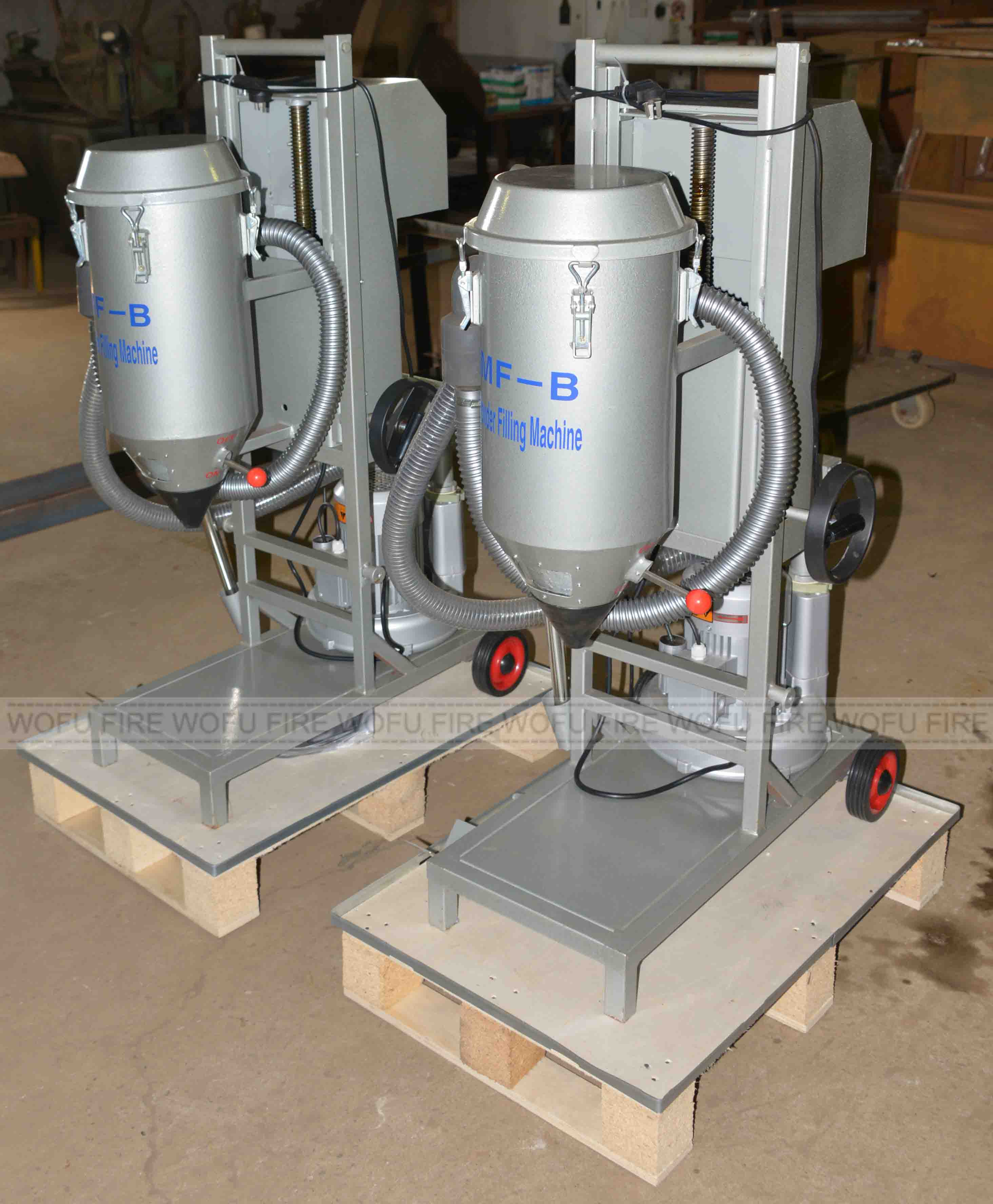 GMF-B dry powder filling machine is not only can it fill portable fire extinguishers, it can also fill hand push type fire extinguishers. The filer main component of this machine, which is made under fire at a high temperature