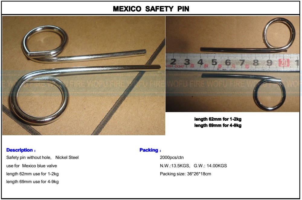 Stainless steel safety pin with hole use for extintor