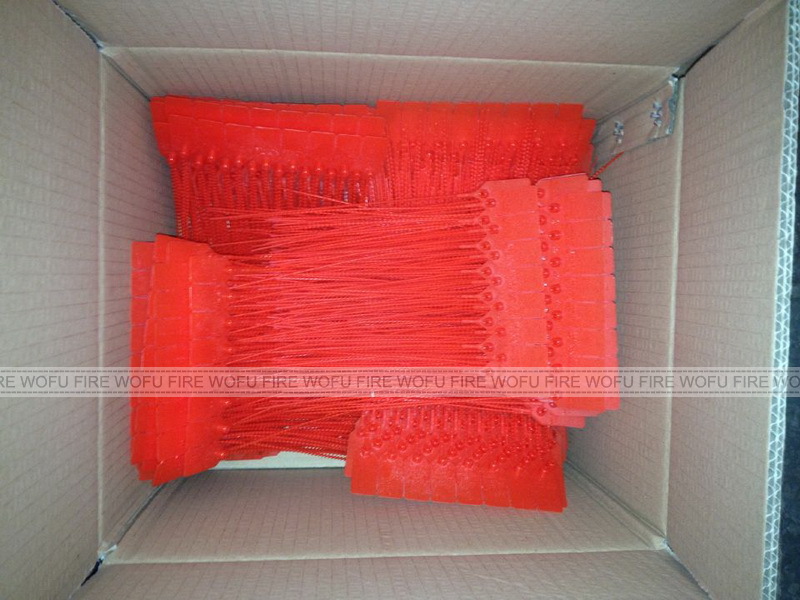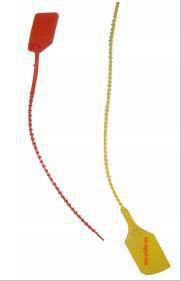 Designed for fire extinguisher use, seals show evidence of tampering when broken or removed. All-plastic. one-piece construction, adjustable seals pull tight for a secure fit.