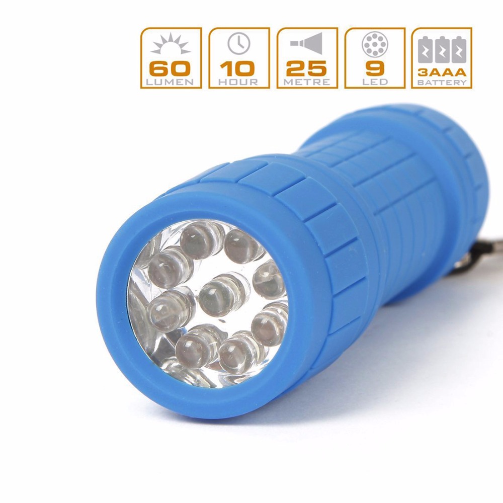 | Product name | Promotion Gift Torch Light AAA Battery Plastic Rubber Coating 9 LED Torch Light |