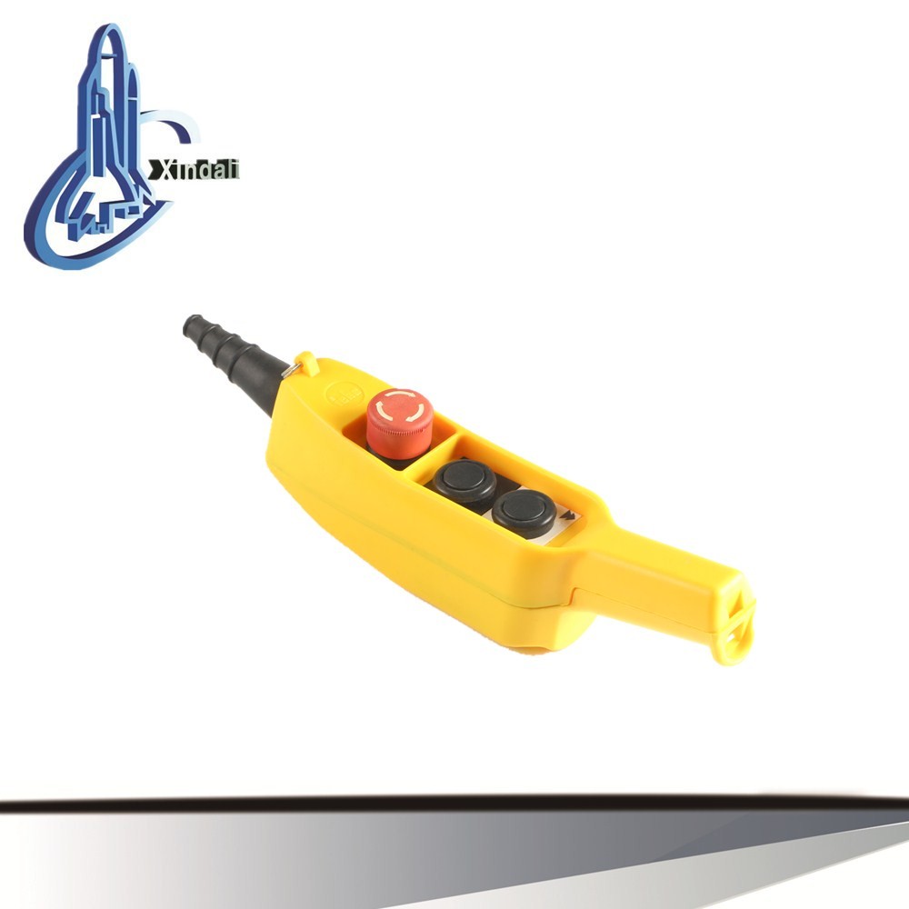 XCD6{ } series rain-proof crane control button station is a newly developed product which combined with the advantages of both china made products and imported product. The plastic cover is good-looking,strong and easy for handing.It has good structure and big area of contact.The forward and backward control can be mechanically locked in a reciprocal direction.It also can be locked in a reciprocal direction by the circuit if necessary,and is therefore more safety in operation.It also has IP65 dust proof and water proof level thus it is suitable for operating in open area,dusty environment,rainy.snowy weather conditions by wet hands for controlling the electric circuit,conveyer belt and construction apparatus.