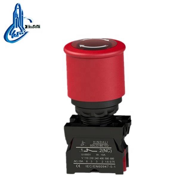 2015 Hot Sale Waterproof IP67 Emergency Stop mushroom push button switch with light XDL22-ESW542 dia. 40mm