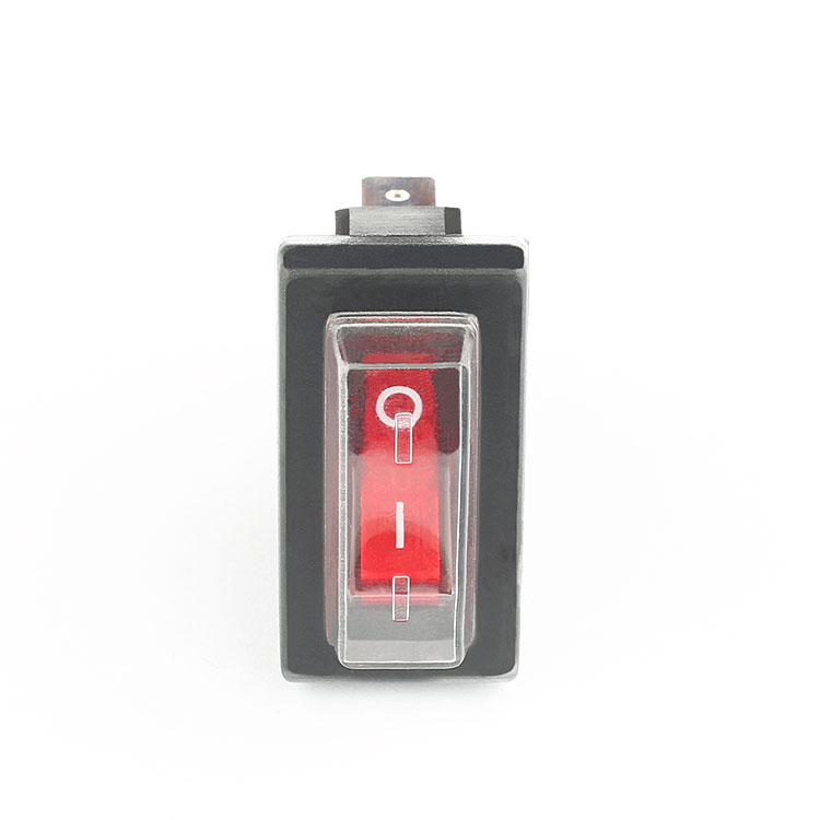 KCD1 SPST 2 pins red illuminated waterproof cover rocker switch