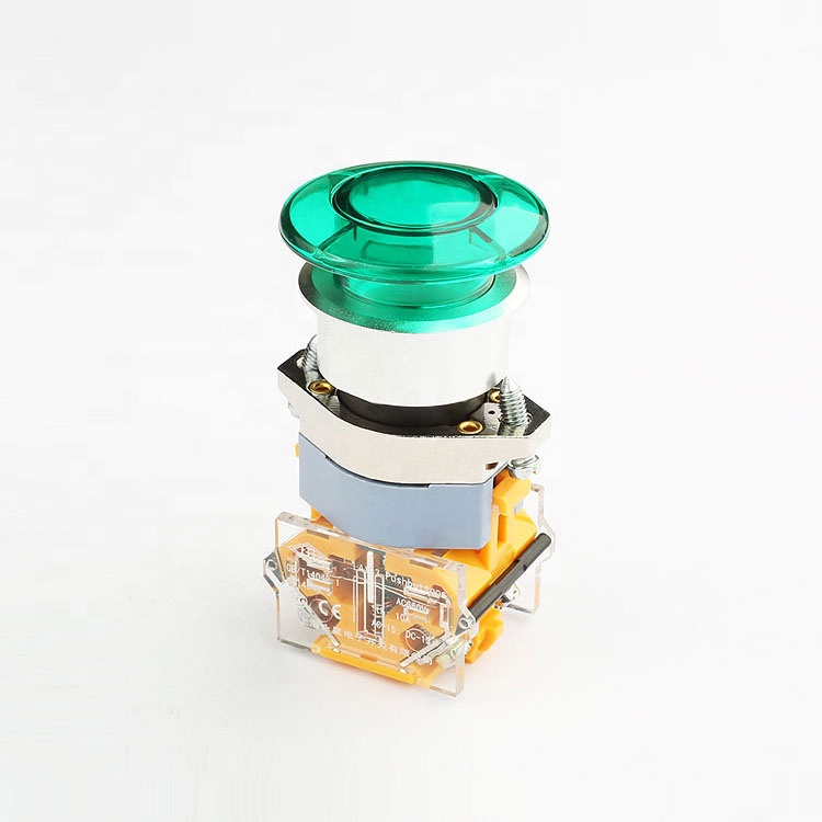 DC24V momentary action mushroom-head push button switches with green latching