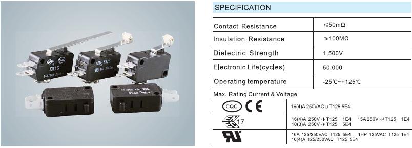 High Precision t125 5e4 5a single-pole single-throw zippy micro switch