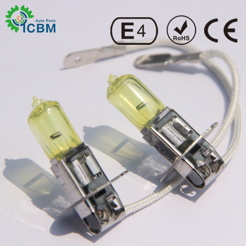 Car Light Halogen Bulb H3 Yellow Bulb 12&24v 55w 70w 100w PK22S Base Fog Light