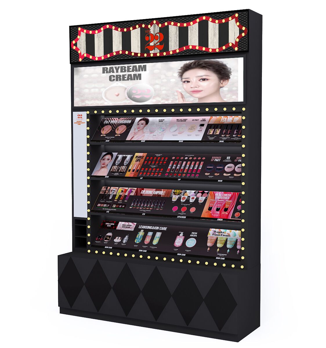 The makeup display cabinet is used to display makeup, perfume, lipstick, skin care product in cosmetic shop, makeup kiosk in shopping mall. The display shelf is made by wooden(MDF), acrylic, hardware, LED lights, mirror ,etc. If you need, we can make the cosmetic store shelf by any size, any color to fit you project. We supply makeup display cabinets wholesale and custom.
