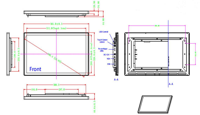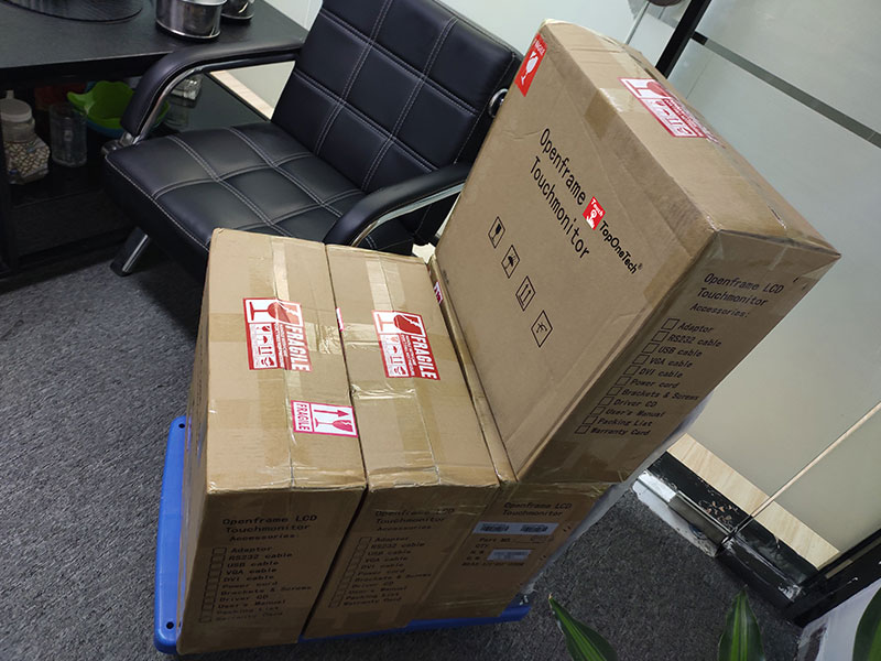 Touch monitors Production flow chart:Materials procurement--Incoming material inspection--Fit the touch screen and LCD screen--, Assembling the AD board-- the inverter board, and the keypad--Data line connection--Shell assembly--Finished product inspection--Aging test--external assessment--package
