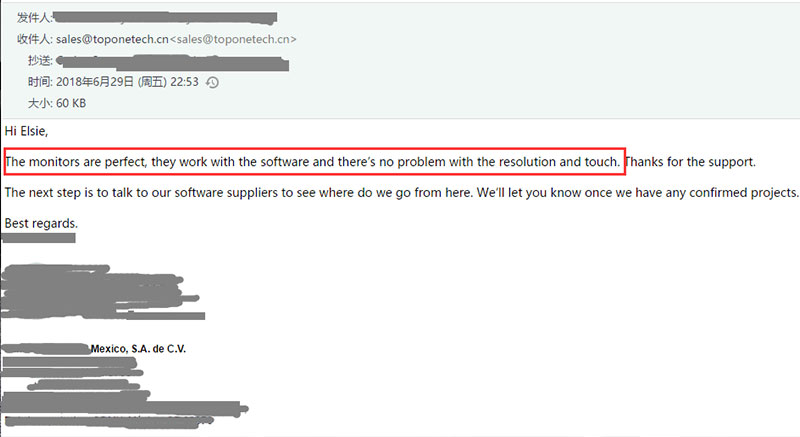 Our engineers discussed about this.Then We designed open frame touch monitor solution for him that is 23 inch, four lights all with 358 colors,and one light on each side , two lights on the back. Meanwhile, we would used the acrylic to cover the back LED light,which was to ensure the back light more beautiful and soft. For convenience,we would make all the lights controlled by remote control .