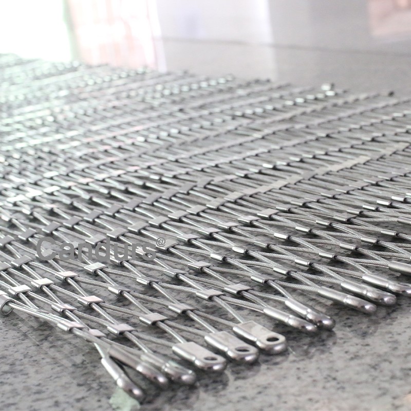 CD2040 is Candurs stainless steel wire ropeferrule mesh,made from 2.0 mm stainless steel cable.7 x 7 rope structure.mesh opening 40mm (OW)x 70mm .
