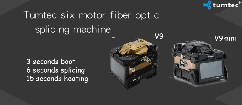 Tumtec six motor optical fiber splicing machine, V9 and V9mini two models, the difference is that the V9mini panel will be smaller than V9, performance is the same with the focus motor precision six motor alignment system, 3 seconds boot, 6 seconds splicing, 15 seconds heating of the rapid work efficiency.
