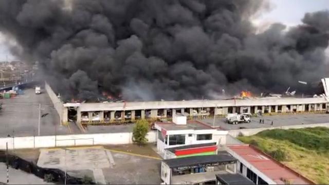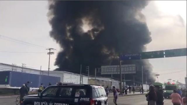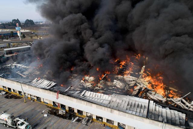 Smoke rises from a burning warehouse in Toluka, Mexico, on December 17. About 350 people were evacuated after a fire broke out in a warehouse North of Toluca, Mexico. No casualties have been reported.