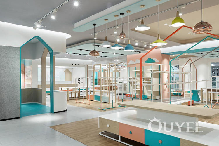 It is necessary for designer to observe the lifestyle and needs of people and to sense the change of the trends. In the very beginning of kidsmoment project, design team did amount of research of children fashion. Different with adult fashion, a fact that the behavior of children clothes shopping is controlled by parents. From this point of view, it could say the children fashion business is built on a social relationship. Designer developed a key word of this project, which is trust. The idea is delivering a clean, pure and joyful space, a trust atmosphere. By increasing the display efficiency and controlling the materials and color, create an attractive retail space with home feeling.