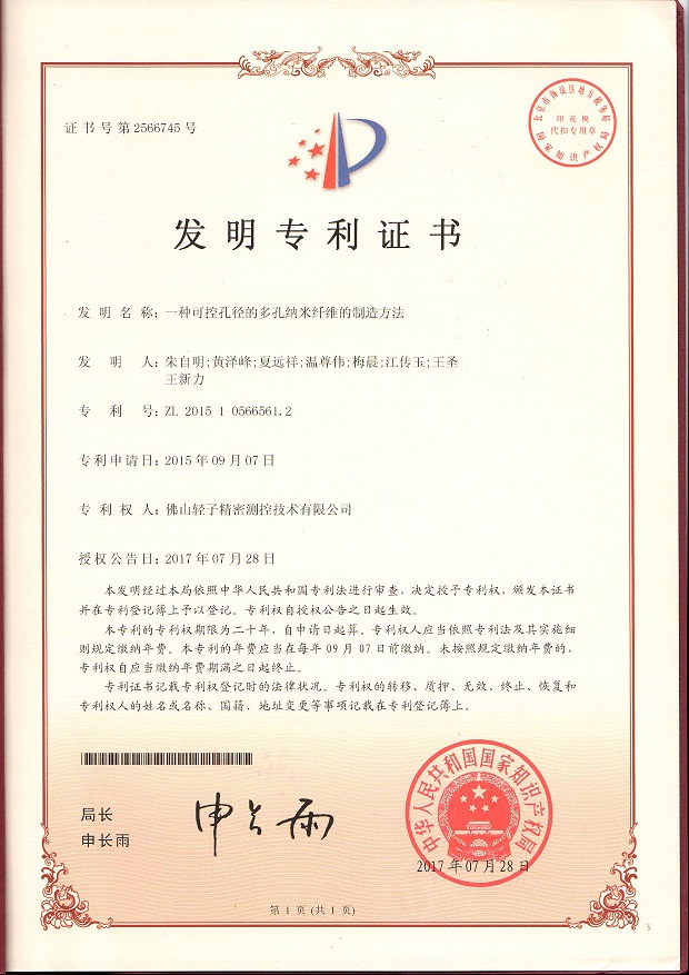 Title of invention: A method for manufacturing porous nano-fibers with controllable aperture.