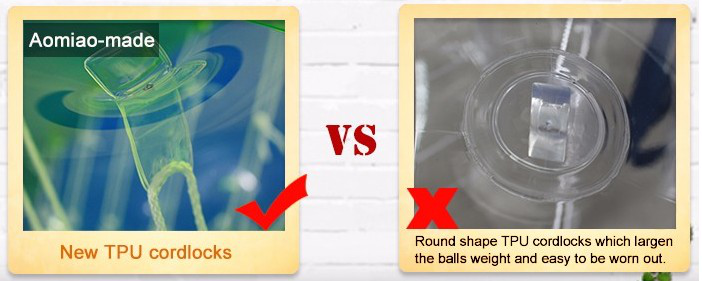 What the cord locks we used in our TPU balls, is the above one on the left. New design TPU cord locks will help to make the balls lighter and easier for people to carry with when playing! Besides, it will make the ball with a smaller packing size that it can be much easier and cheaper to be shipped. Also, the inside space of the ball will become larger and more easier for people to move and act to play, meeting different requirements for different people!