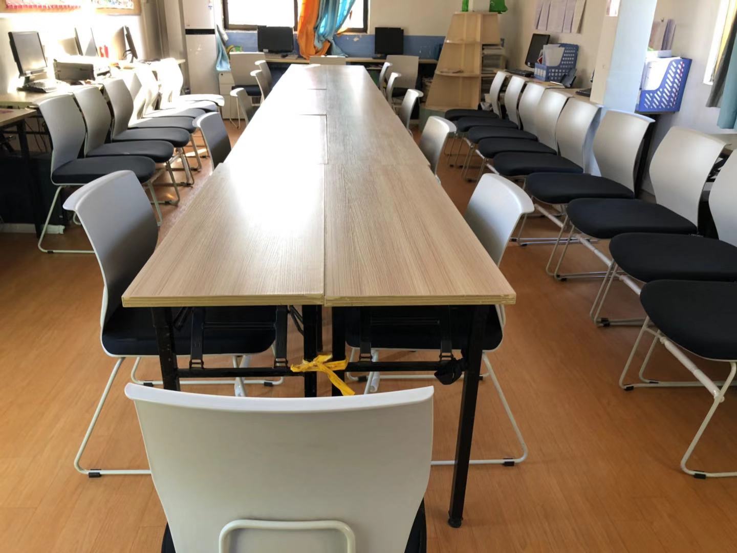 This is not the first time we work for this client. We had helped them fit out their multimedia classrooms, teacher offices, reception room, etc. Read here the photo record of this project. The arm-less plastic mid-back chair DHS-PU24 won the client’s favor again. Its clean and soft lines and leisure design makes it an ideal choice for use in various spaces. It is our own design, originally designed by our Tevson Professional Design Team, provides comfort, functionality, and beauty in any environment. We are very delighted with this happy and satisfaction cooperation.
