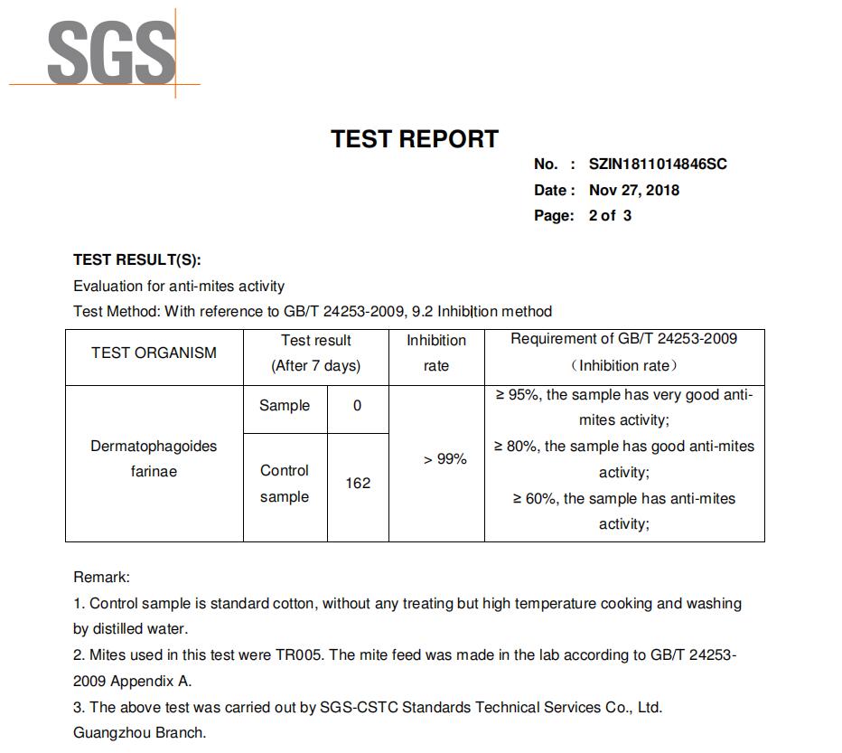 Donguan OPeREAL Comercial and Trading Co.,Ltd. has got the Evaluation for anti-mites activity Test Certification from SGS company today.