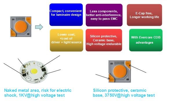 Evercore is specialized in manufacturing high quality LED COB modules, providing quality LED lighting source (LED COB module)and total accessory solutions to lighting fixture manufacturers. For more information on our company COB AC products, please refer to the website :